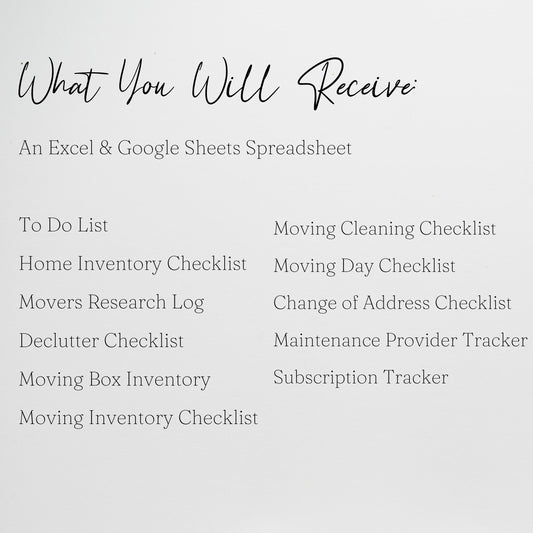 Home Moving Planner Bundle Google Sheet and Excel Spreadsheet