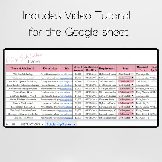 College Scholarship Tracker Template Google Sheets and Excel Spreadsheet