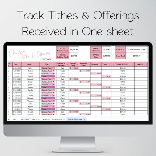 Church Tithing Template Excel Spreadsheet and Google Sheets
