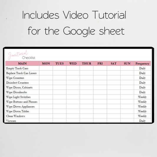 Janitorial Checklist Template Google Sheets and Excel Spreadsheet