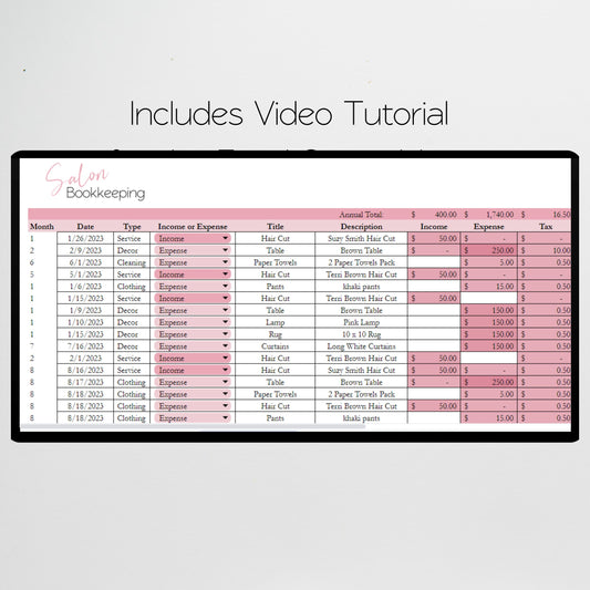 Salon Bookkeeping Template Spreadsheet Google Sheet