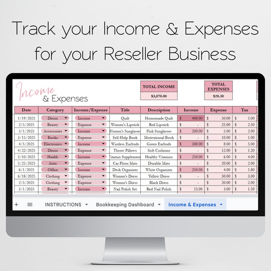 Reseller Bookkeeping Template Google Sheets and Excel Spreadsheet