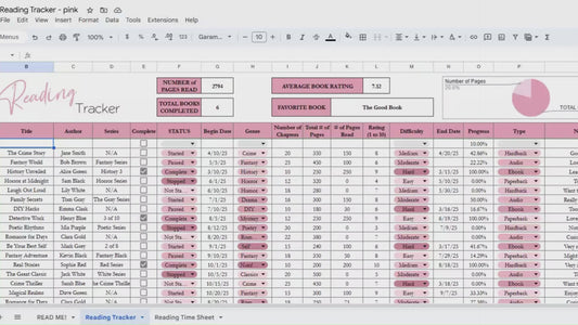 Reading Tracker Template Google Sheets and Excel Spreadsheet