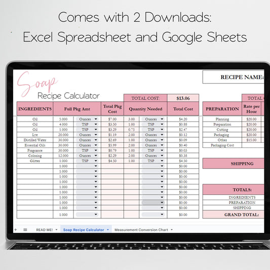 Soap Recipe Calculator Google Sheet and Excel Spreadsheet