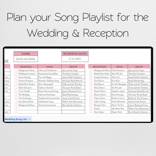 Wedding Song Playlist Template Google Sheets and Excel Spreadsheet