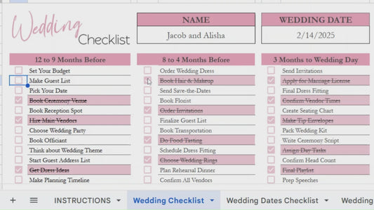 Wedding Checklist Template Google Sheets and Excel Spreadsheet