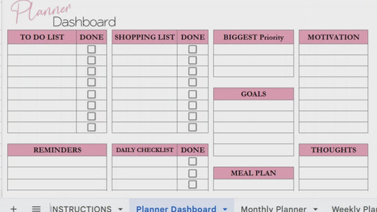Undated Digital Planner Template Google Sheets and Excel Spreadsheet
