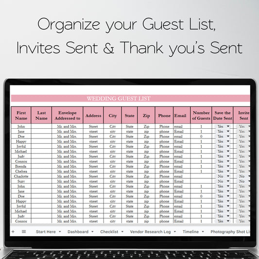 Wedding Guest List Template Google Sheets Excel Spreadsheet