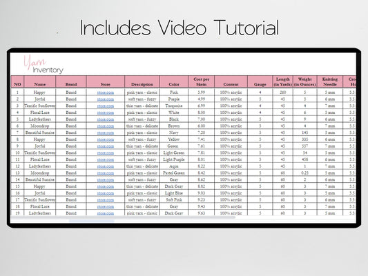 Yarn Inventory Tracker Google Sheets and Excel Spreadsheet