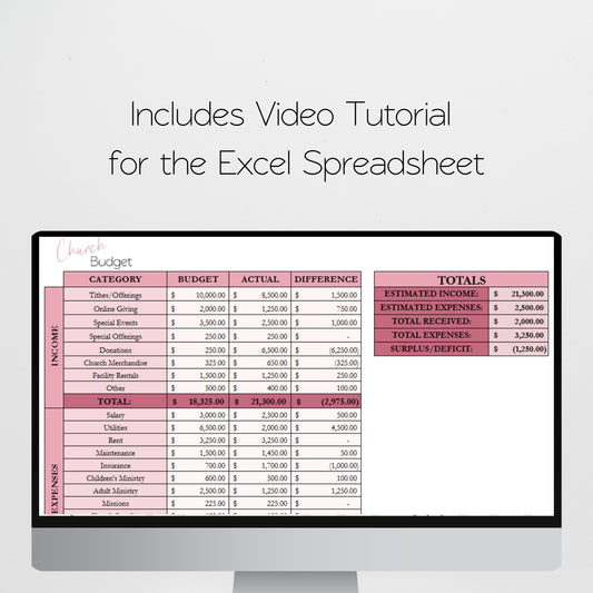 Church Budget Template Excel Spreadsheet and Google Sheets