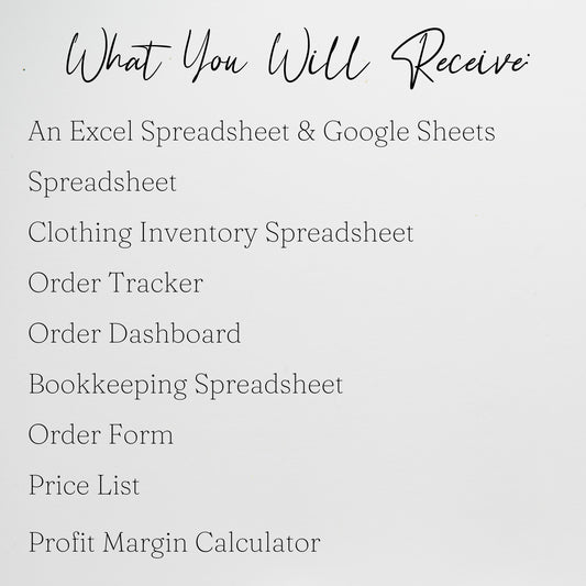 Clothing Business Excel Template, Clothing Business Bundle Google Sheets