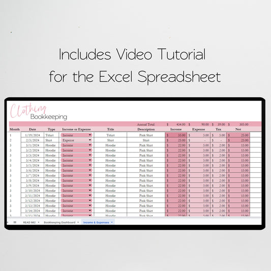 Clothing Bookkeeping Template Google Sheets Excel Spreadsheet