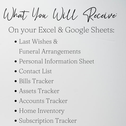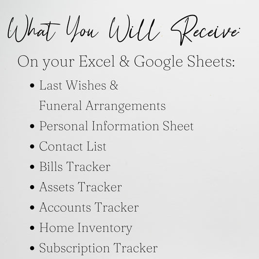 End of Life Planner Google Sheet Template, Death Planner