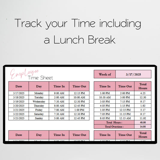 Employee Time Sheet Template with Lunch Excel Spreadsheet and Google Sheets