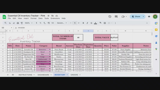 Essential Oil Inventory Tracker Template Google Sheet and Excel Spreadsheet
