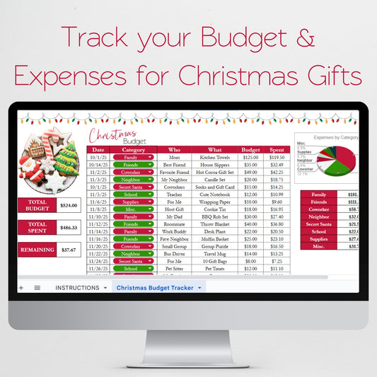 Christmas Budget Spreadsheet Template, Excel Spreadsheet and Google Sheet