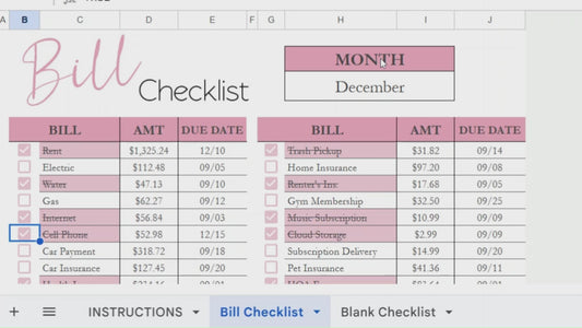Bill Checklist Template for Google Sheets and Excel Spreadsheet