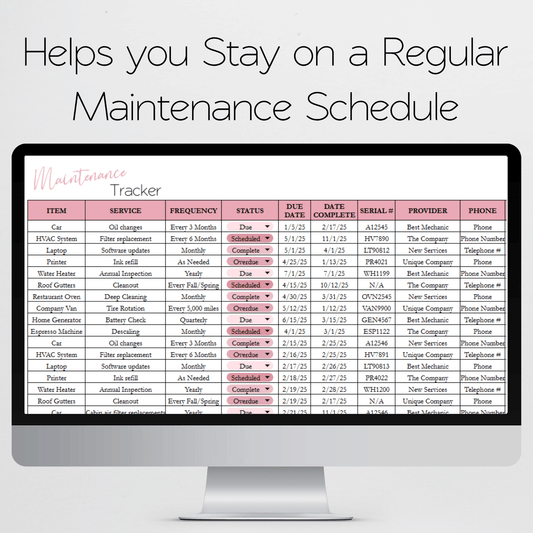Maintenance Tracker Template for Google Sheets and Excel Spreadsheet