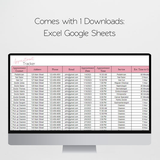 Business Appointment Tracker Template Google Sheets and Excel Spreadsheet
