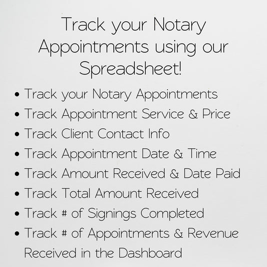 Notary Appointment Tracker Template for Google Sheets and Excel Spreadsheet