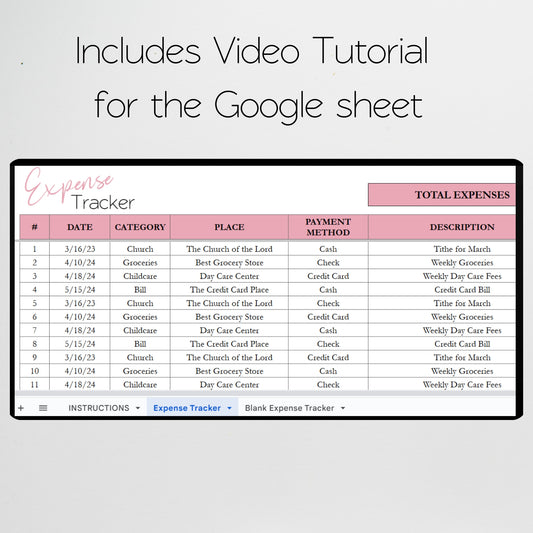 Expense Tracker Google Sheet, Expenses Log Excel Spreadsheet