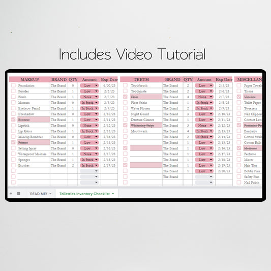 Toiletries Inventory Tracker Template Google Sheets and Excel Spreadsheet