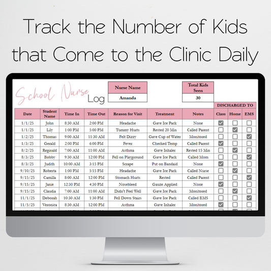 School Nurse Log Template Google Sheets and Excel Spreadsheet