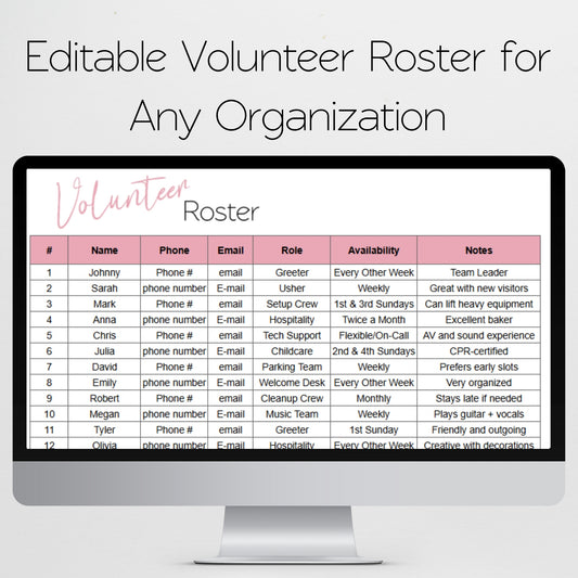 Volunteer Roster Template Google Sheets and Excel Spreadsheet