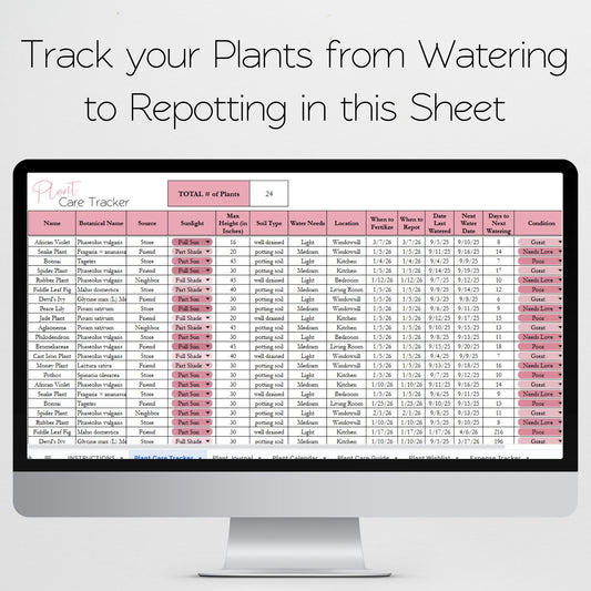 Indoor Plant Planner Template Excel Spreadsheet and Google Sheets