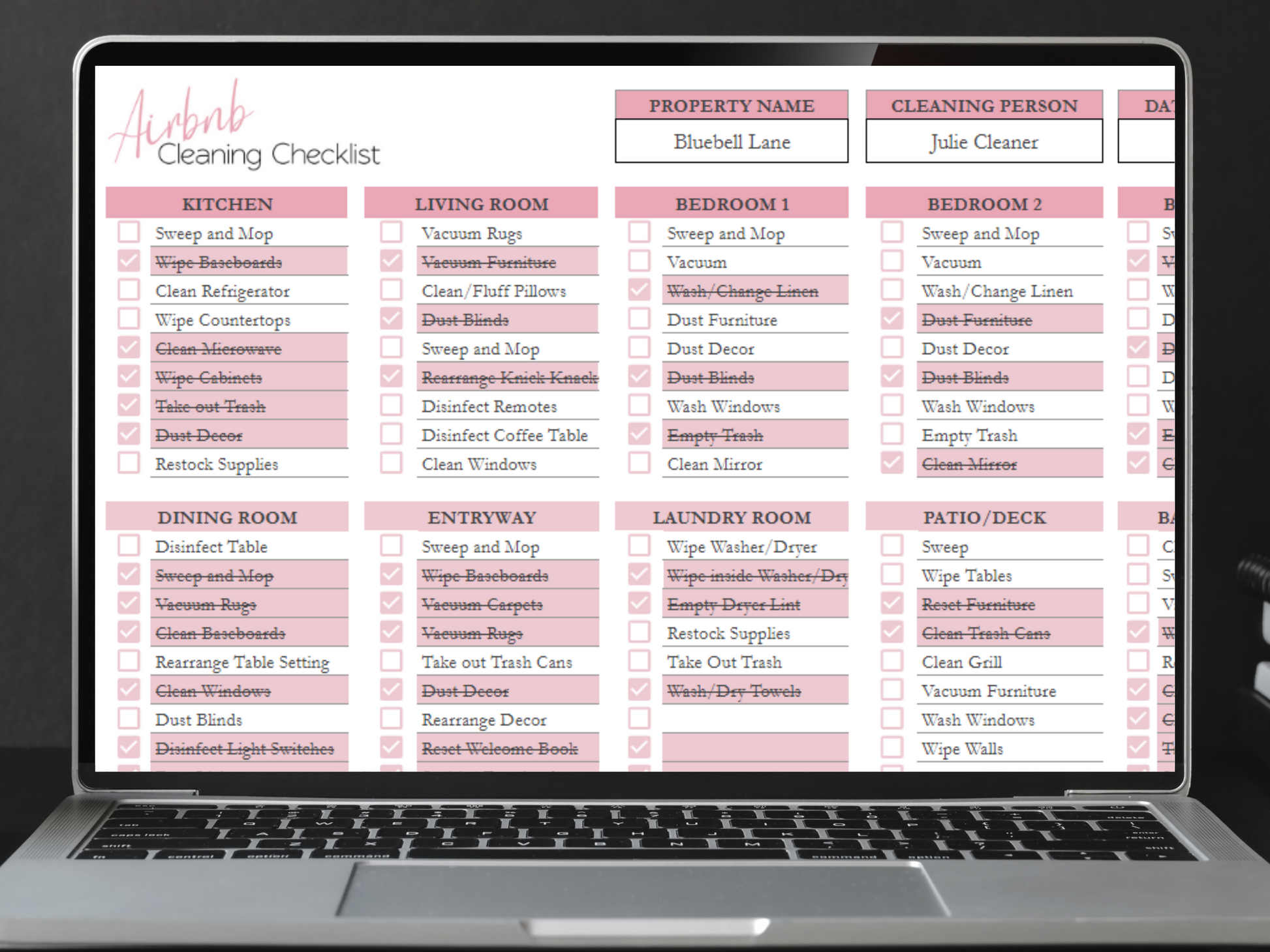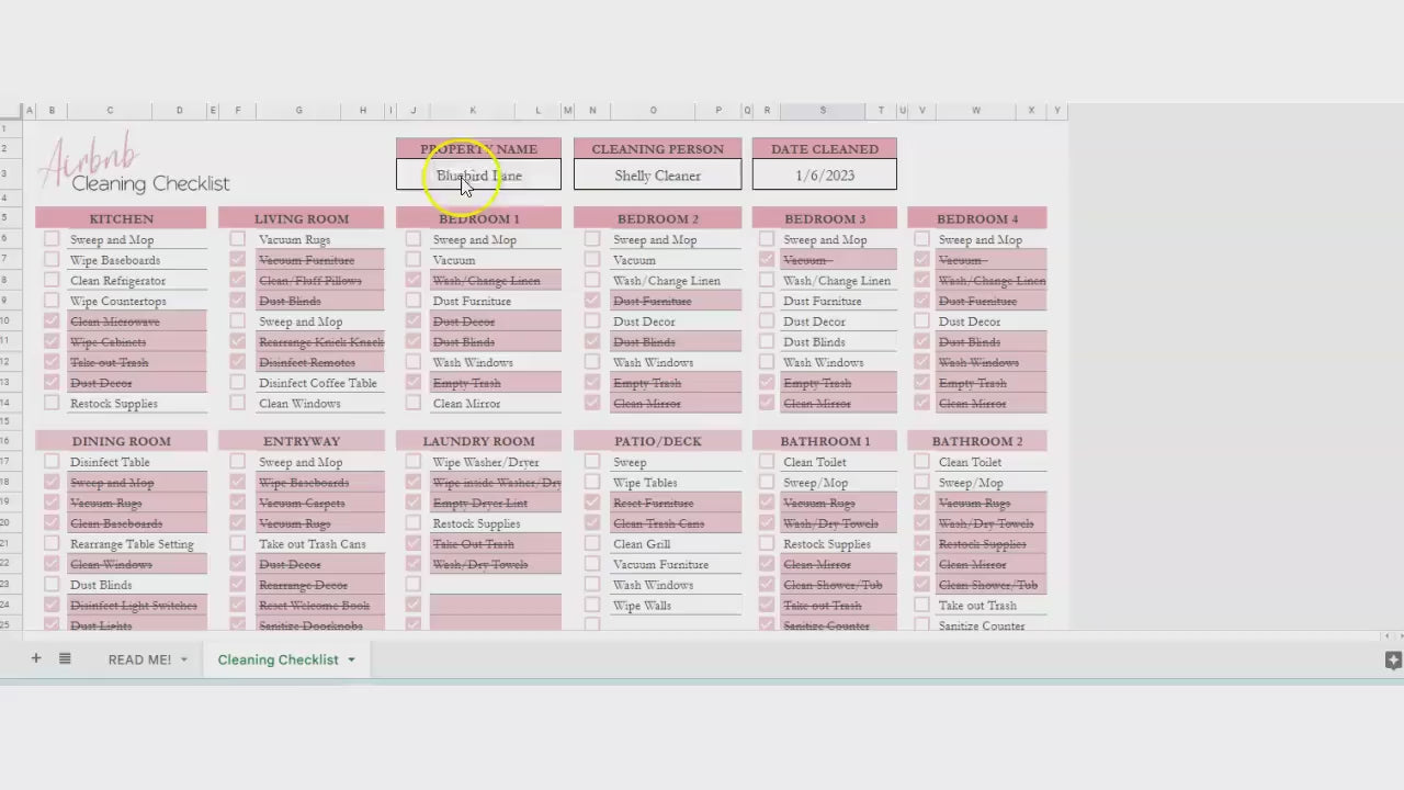 Airbnb Cleaning Checklist Template Google Sheets Excel Spreadsheet