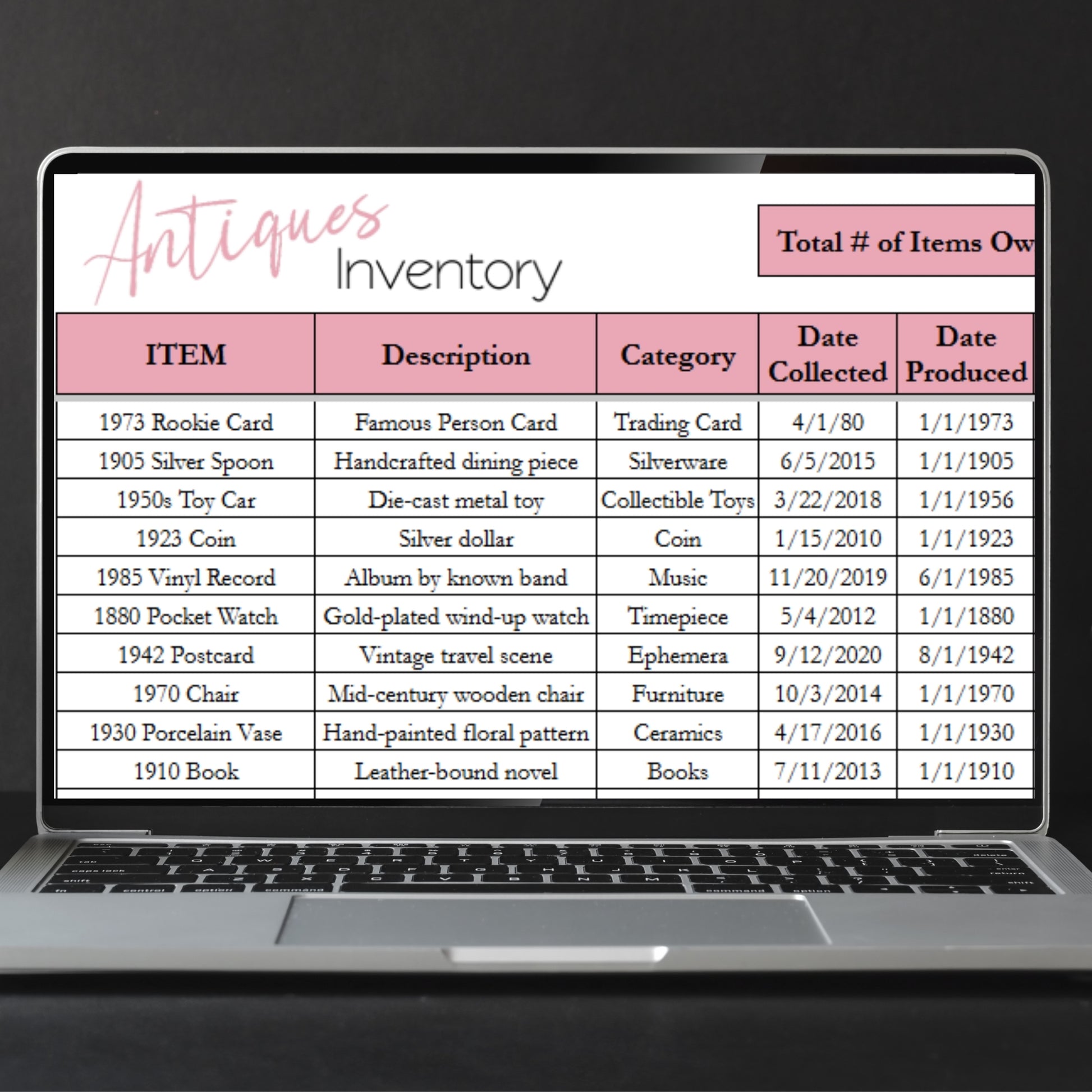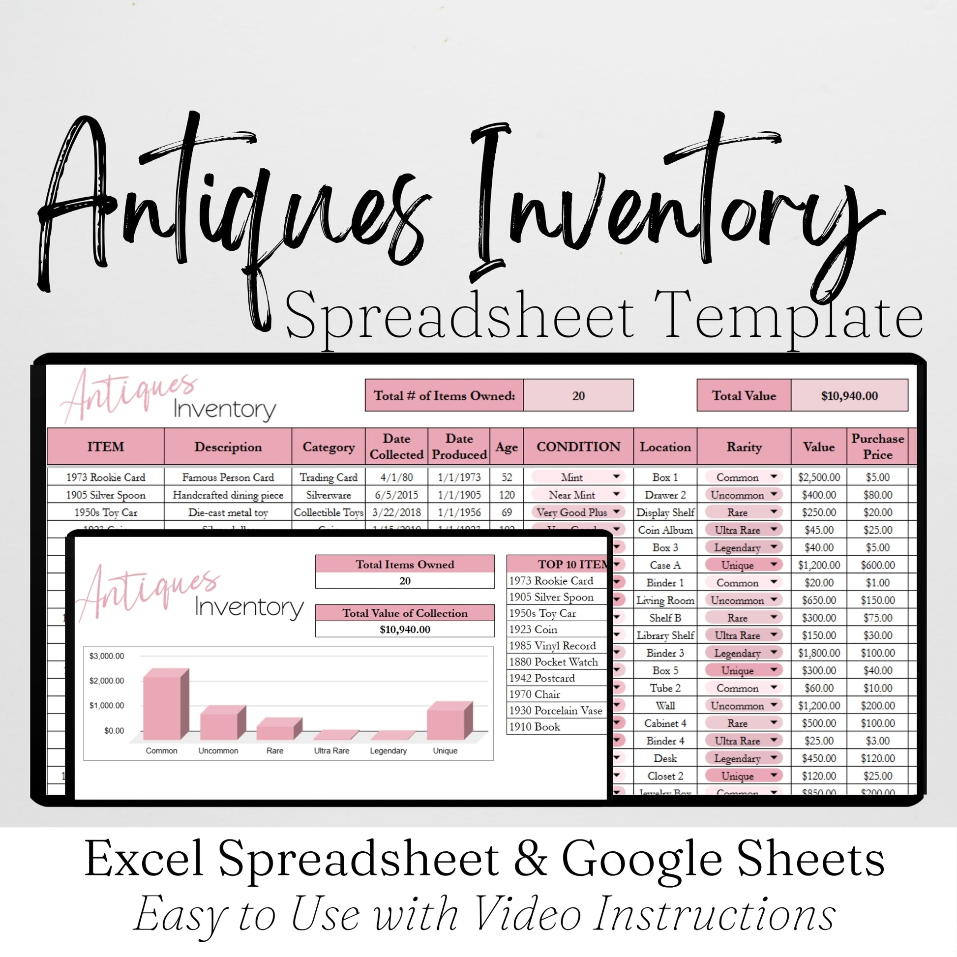 Antiques Inventory Tracker Template Google Sheets and Excel Spreadsheet
