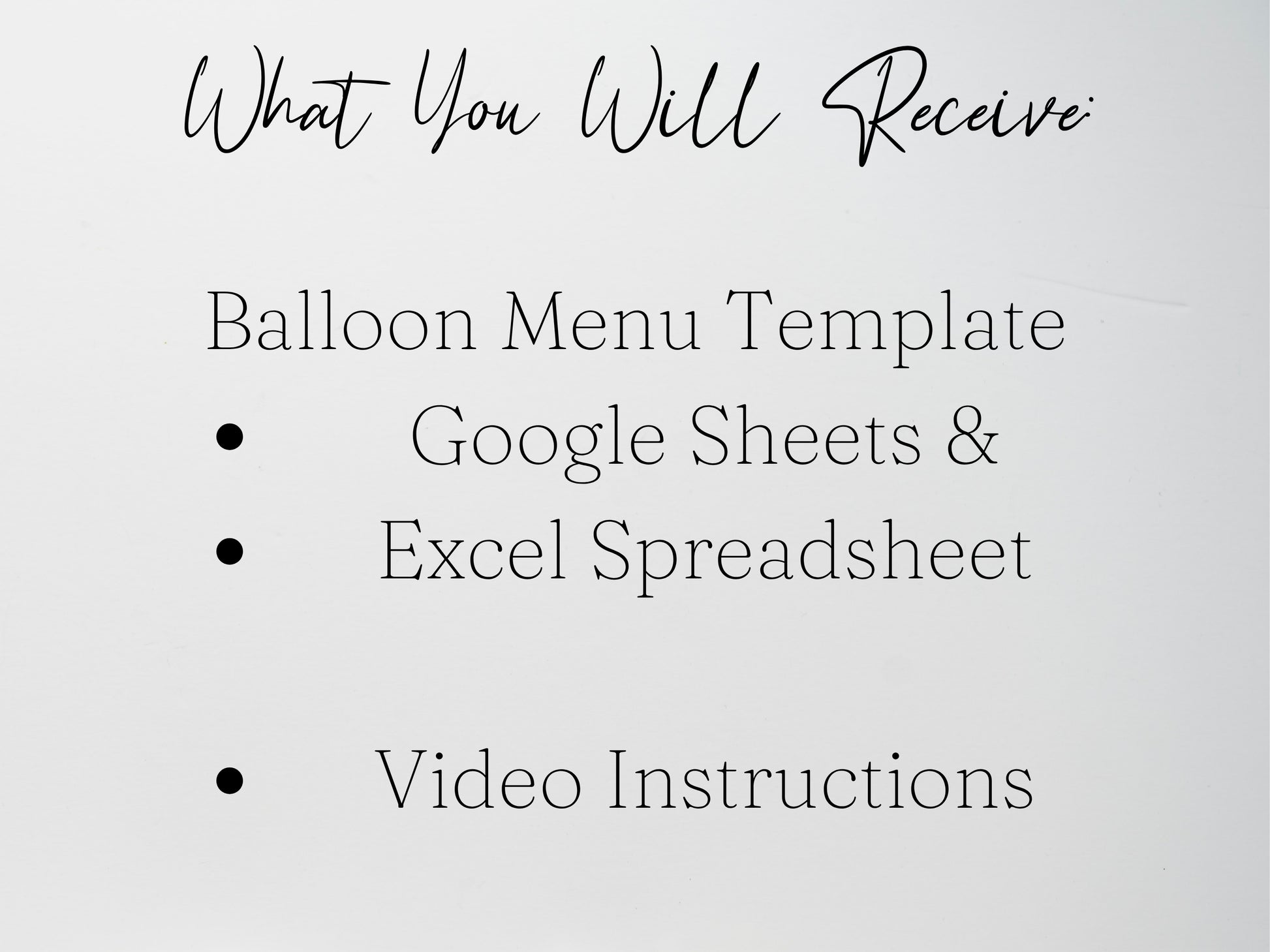 Balloon Menu Template - Google Sheets and Excel Spreadsheet