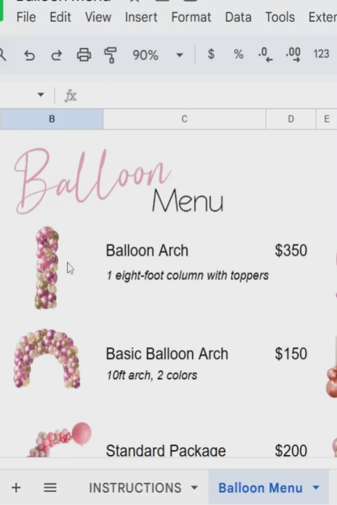 This template is part of a larger balloon business bundle that I sell separately here... https://savvyandthriving.com/products/balloon-business-template-bundle-google-sheet-and-excel-spreadsheet
