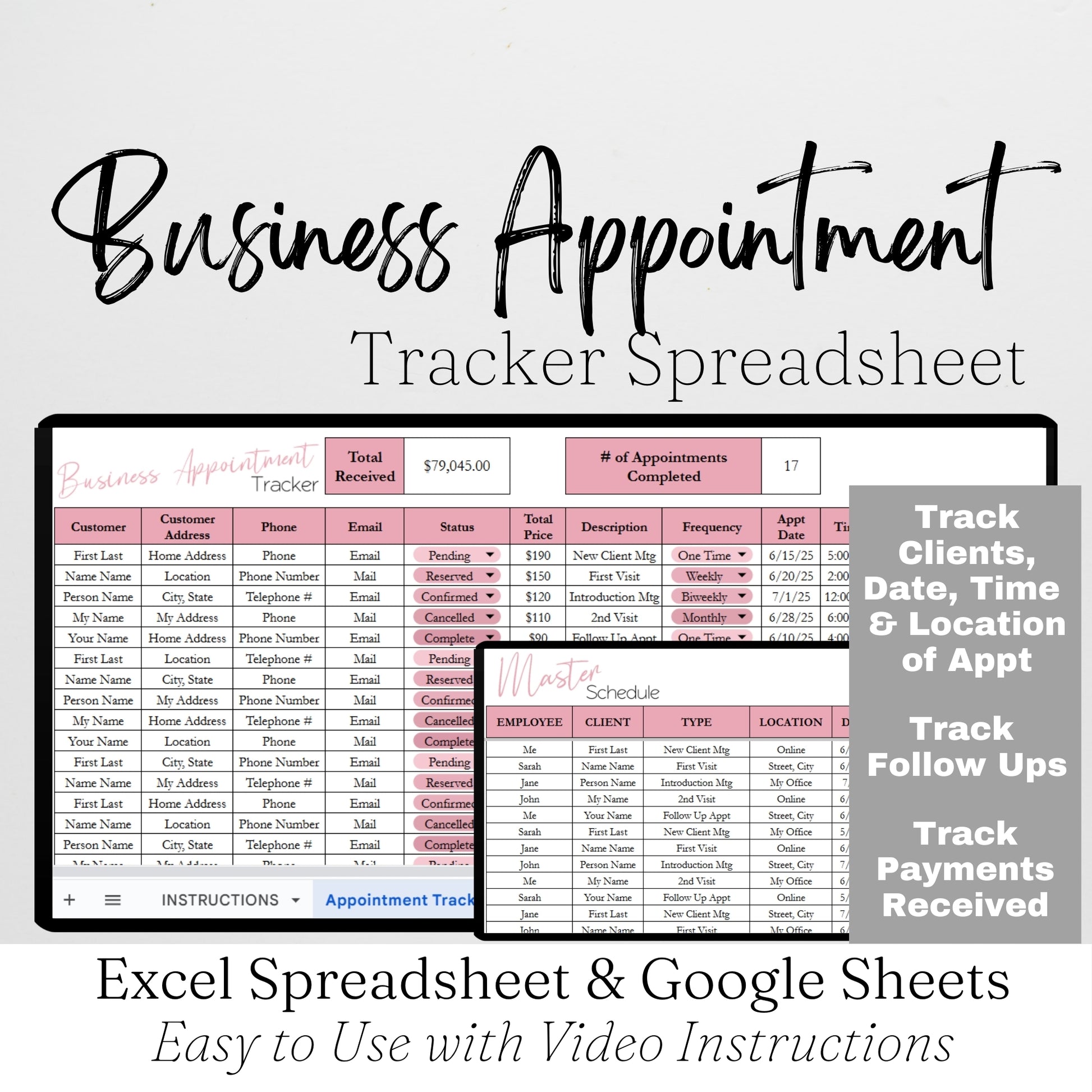 Business Appointment Tracker Template Google Sheets and Excel Spreadsheet