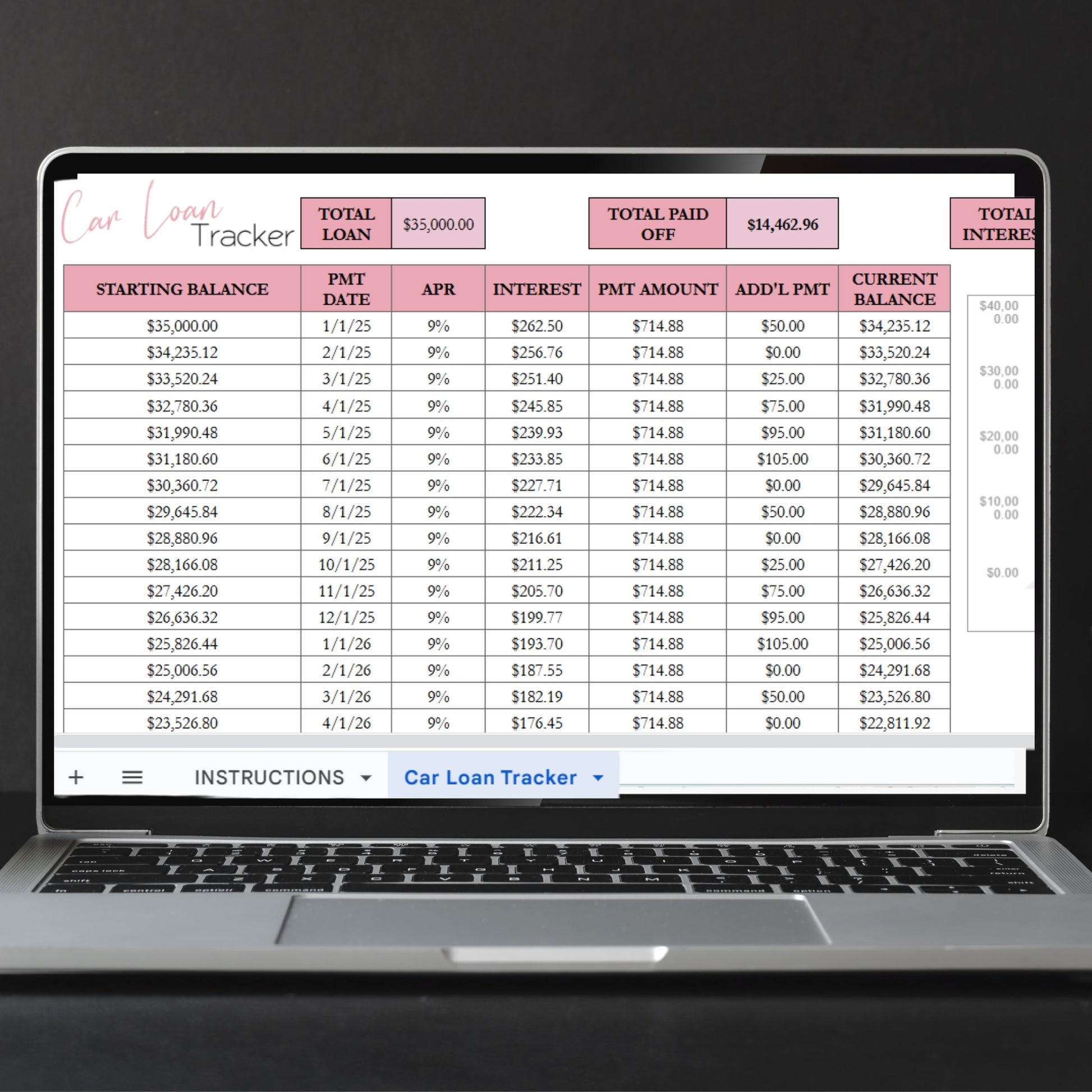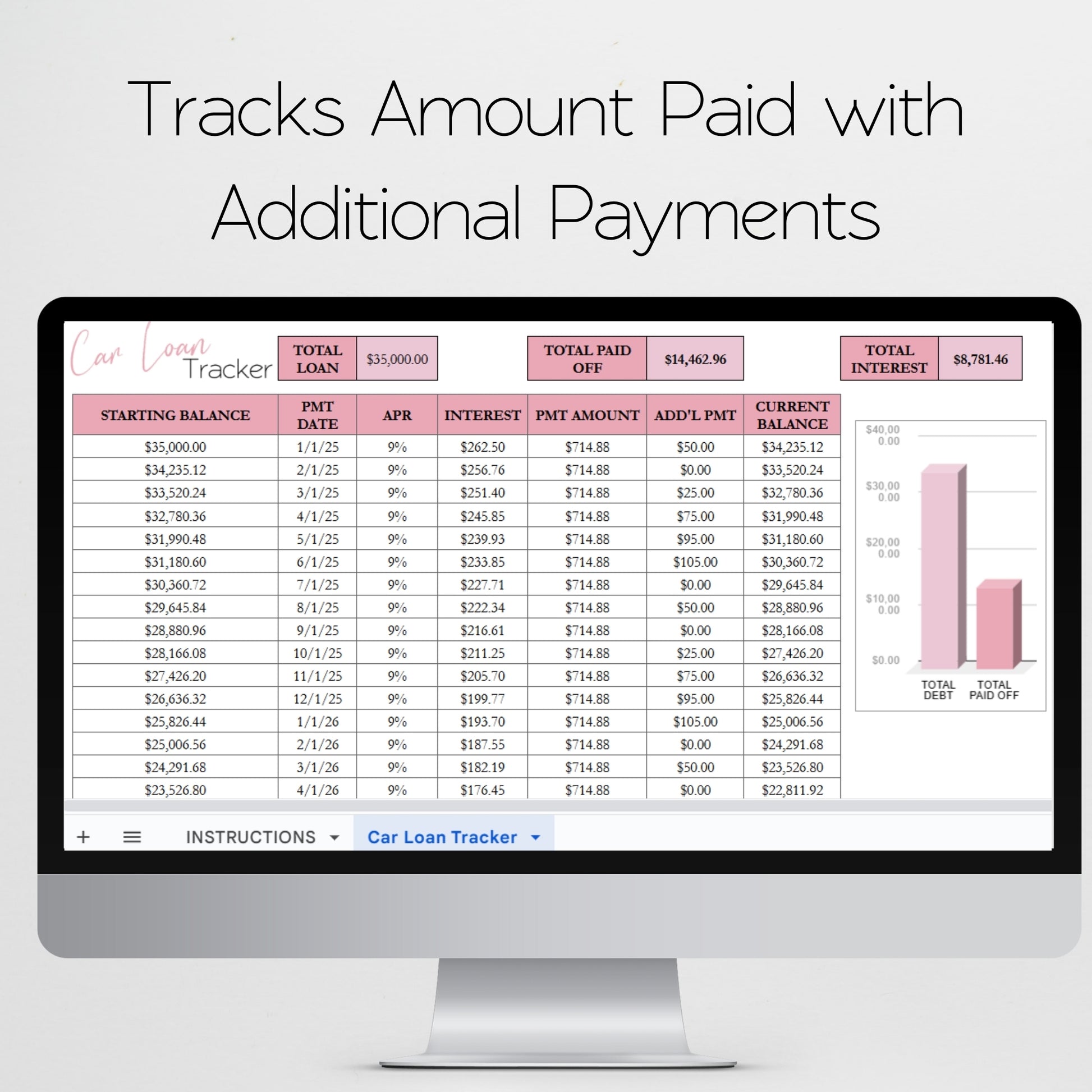 Car Loan Payment Tracker Template Google Sheets and Excel Spreadsheet