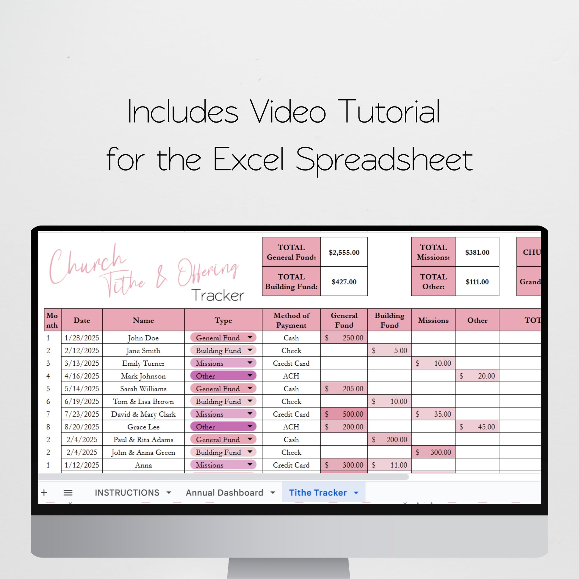 Church Tithing Template Excel Spreadsheet and Google Sheets