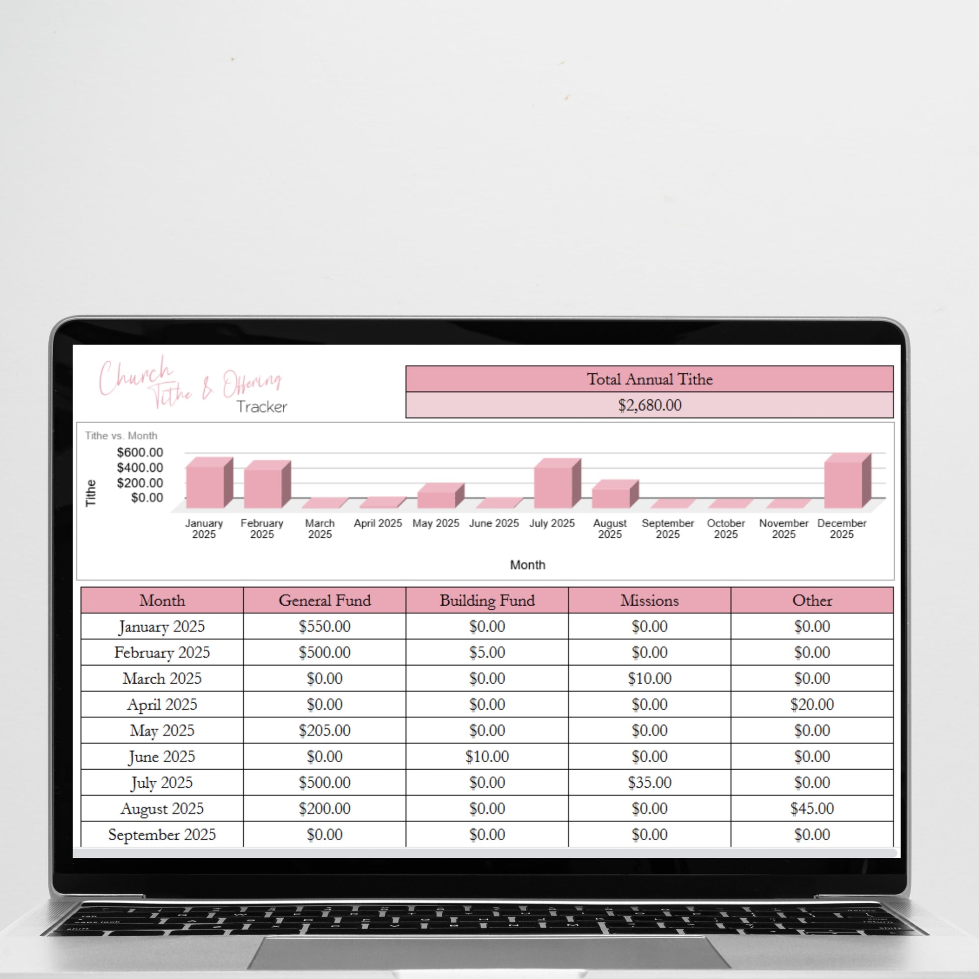 Efficiently track your church member donations with this customizable Church Tithing Template for Excel and Google Sheets. Stay organized with your tithes and offerings for the year with our spreadsheet. This tithe tracker is perfect for every church to be organized and to plan your church budget for the year.