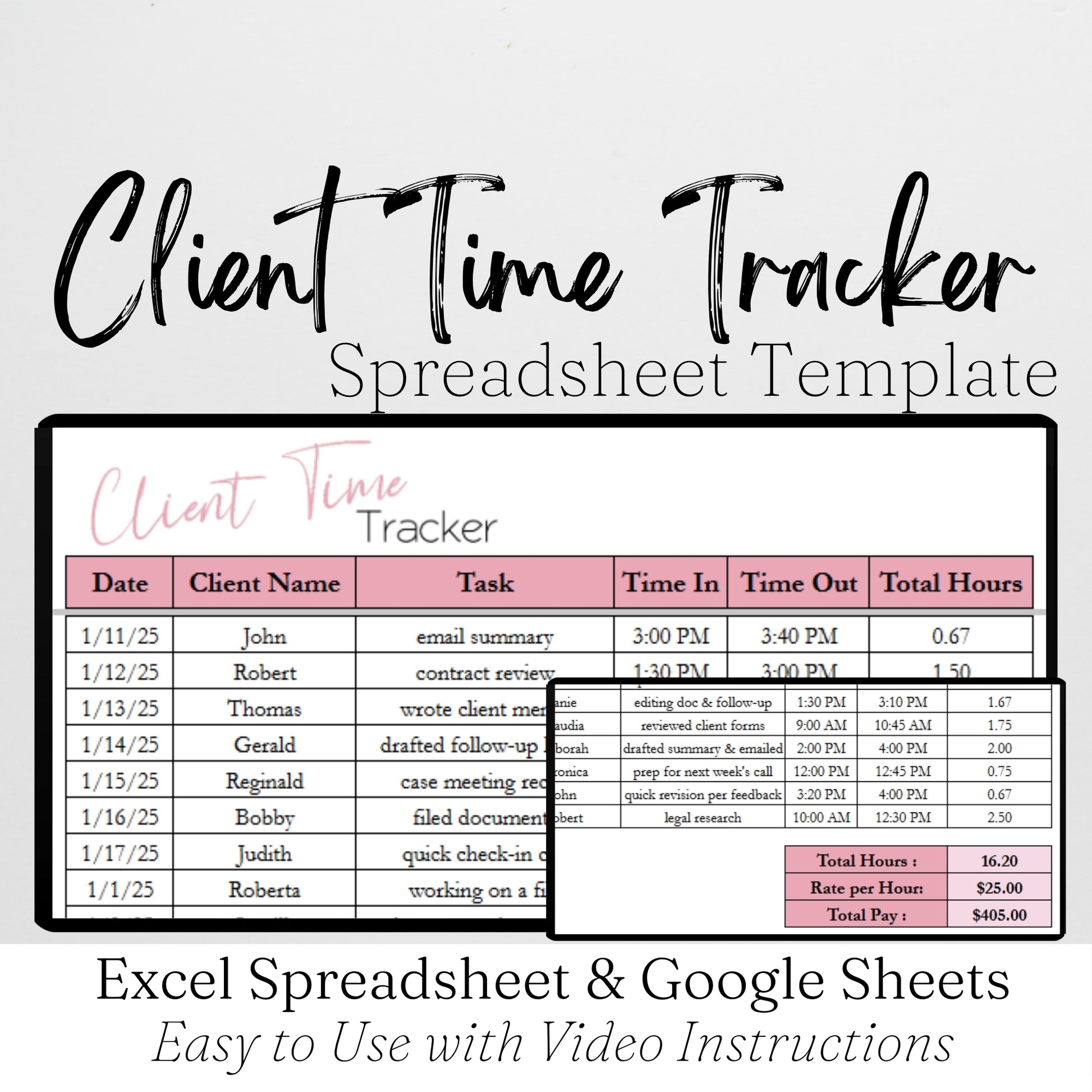 Client Time Tracking Spreadsheet Template Google Sheets and Excel Spreadsheet