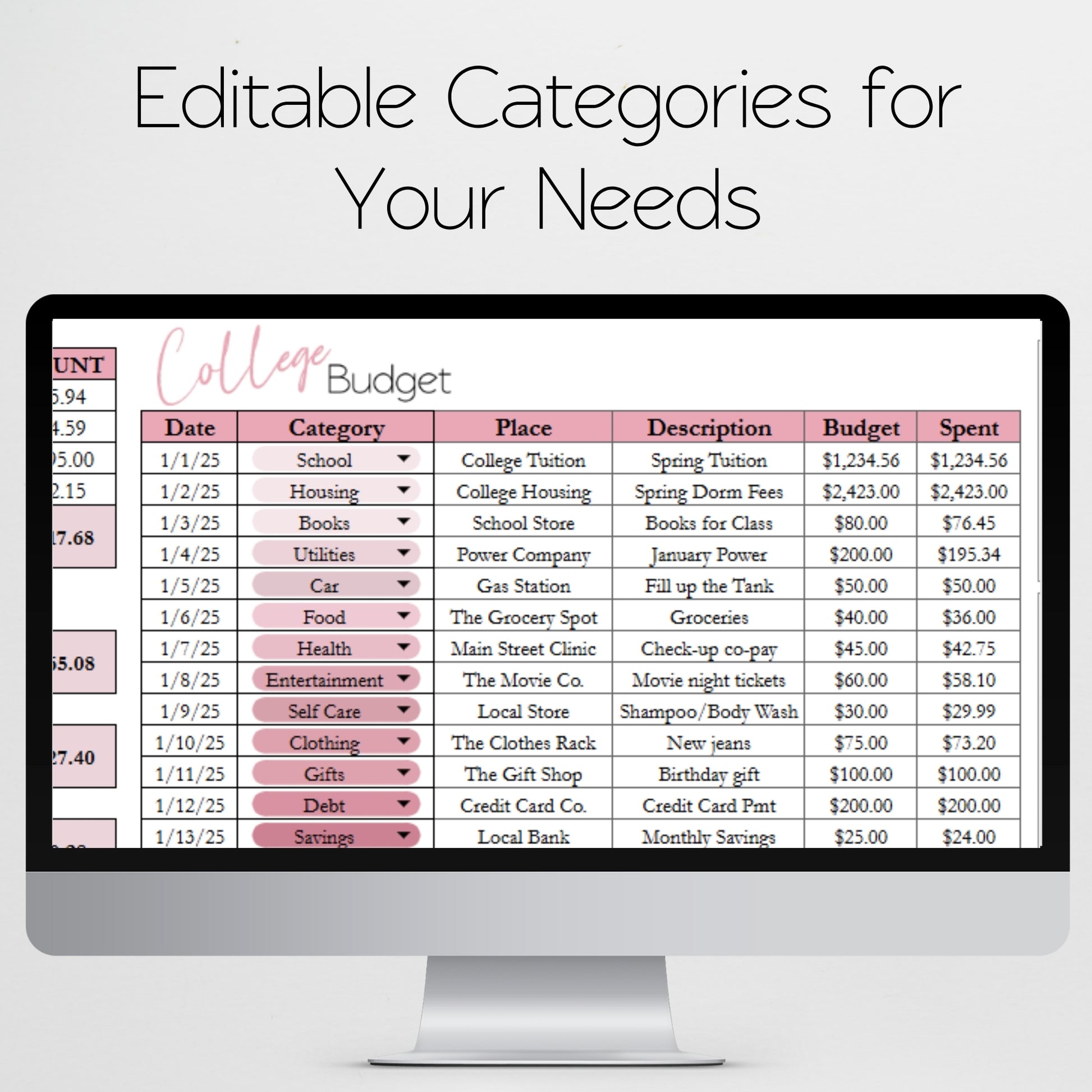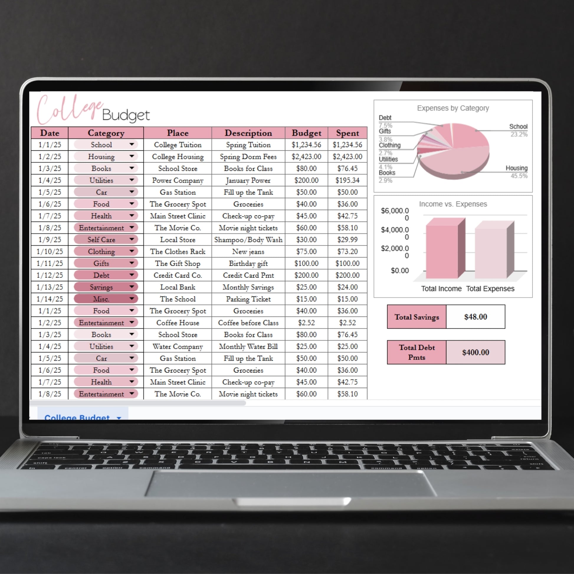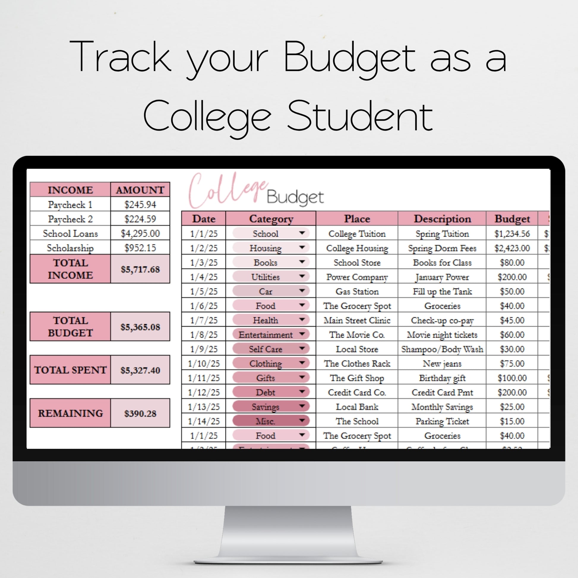 College Budget Template for Google Sheets and Excel Spreadsheet