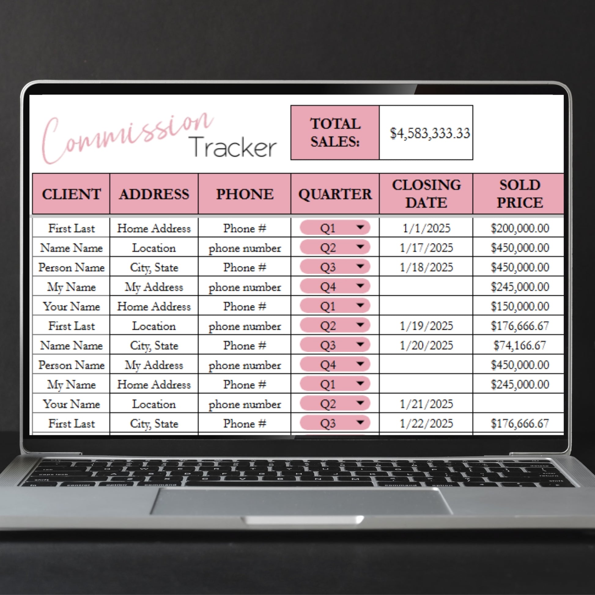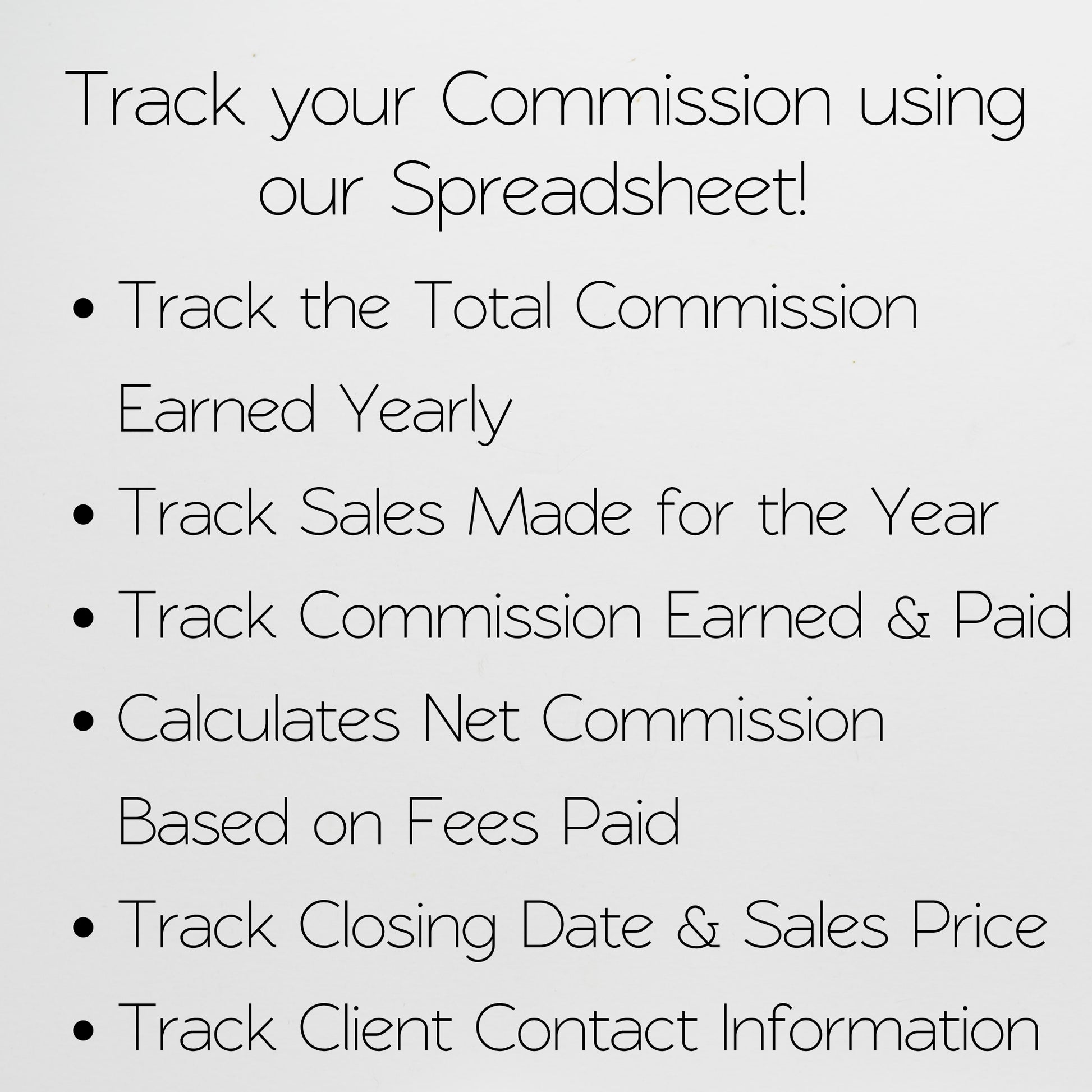 Track your income using this commission tracker spreadsheet template. You can track your total annual commission, the net commission after fees. You can check off if you have been paid commission and what date. This is perfect for a real estate agent, travel agent, insurance agent, and sales people to track your sales. This spreadsheet works in Google Sheets and Excel.Â