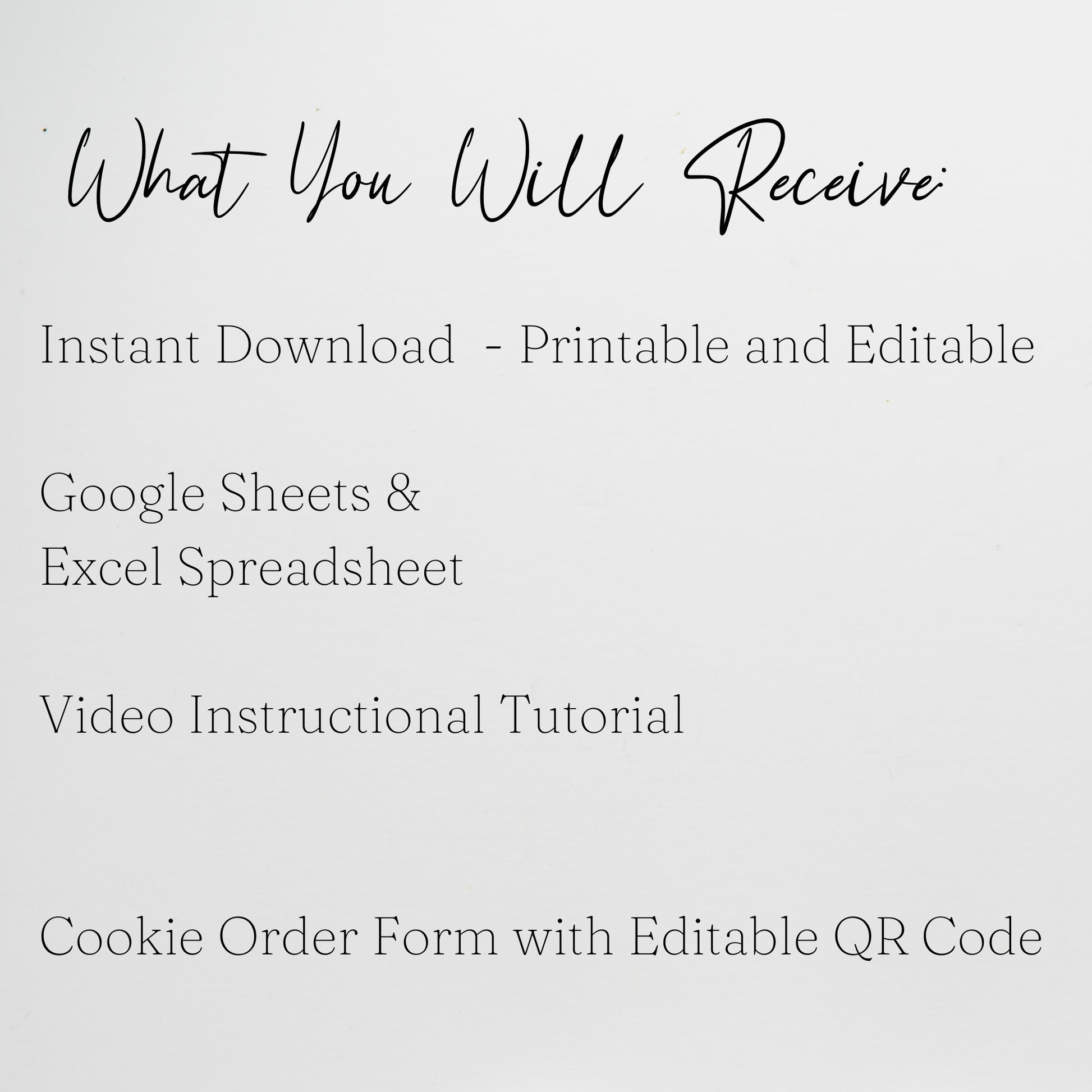 Cookie Order Form Template with QR Code Google Sheets and Excel, Printable Templates