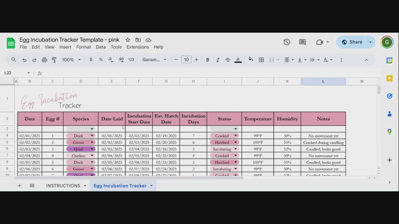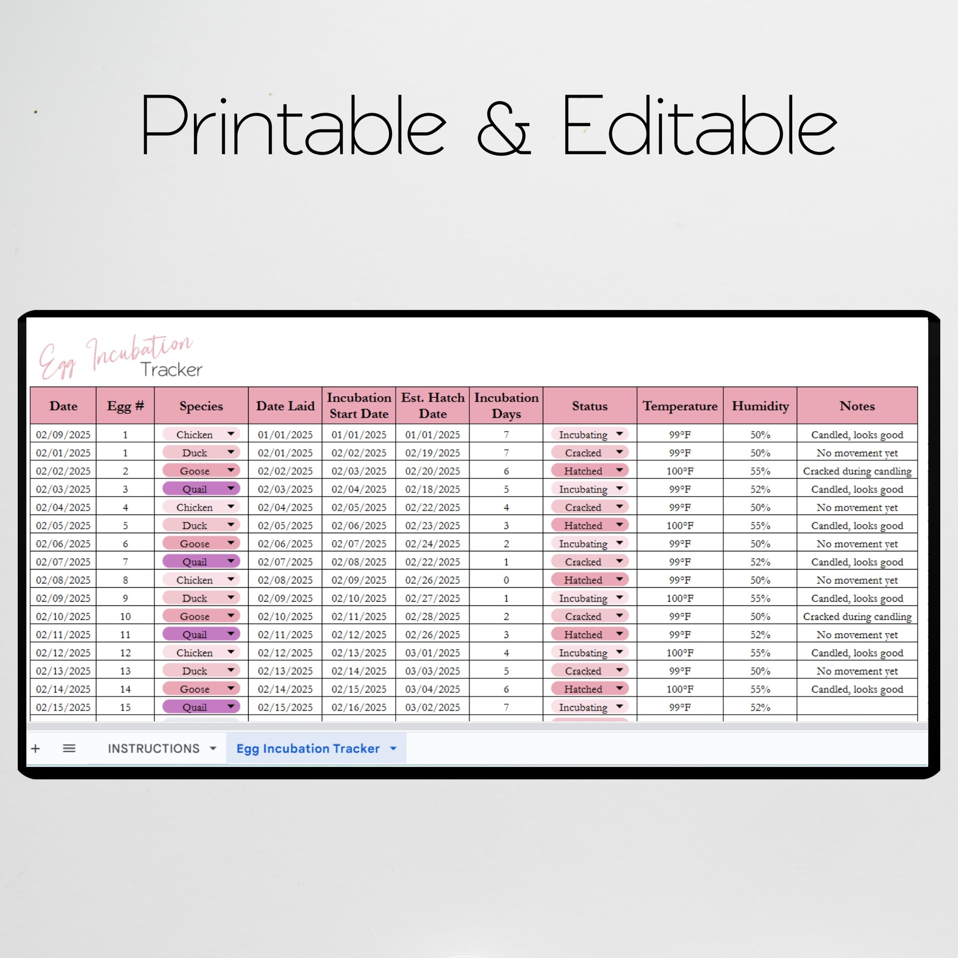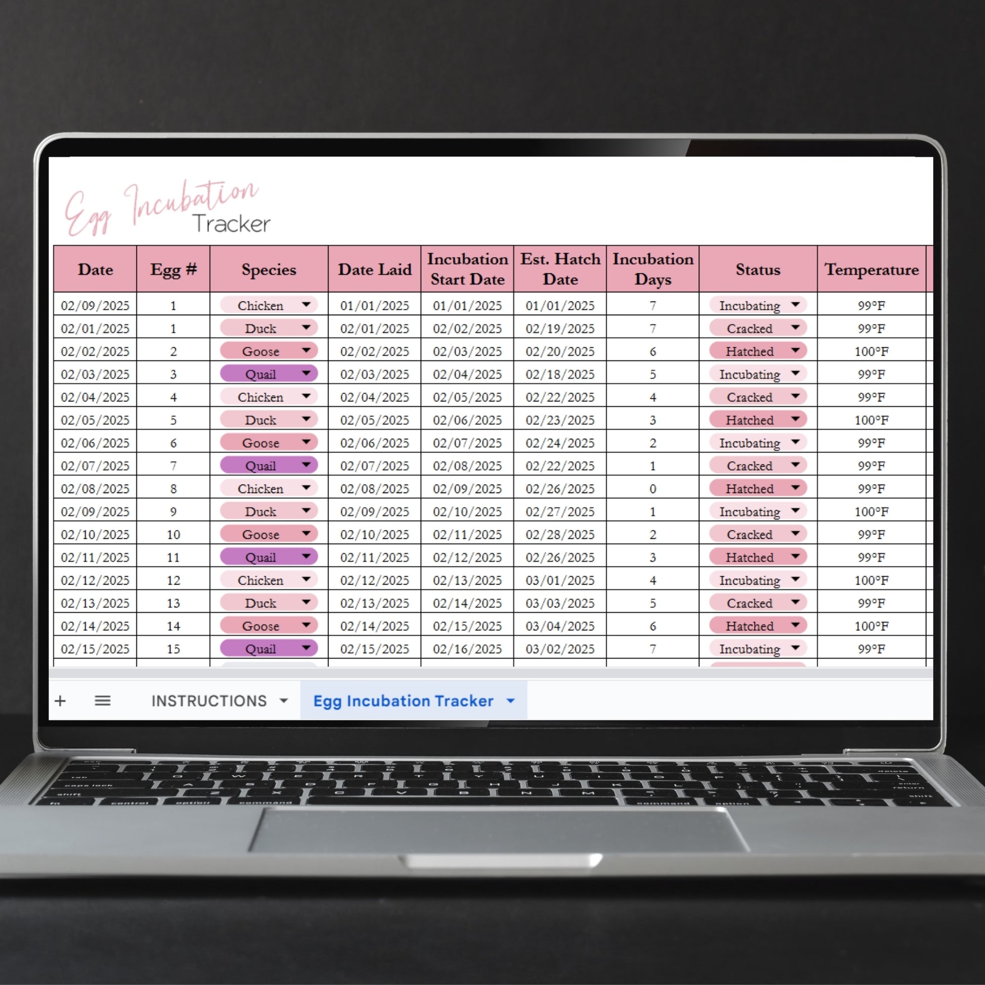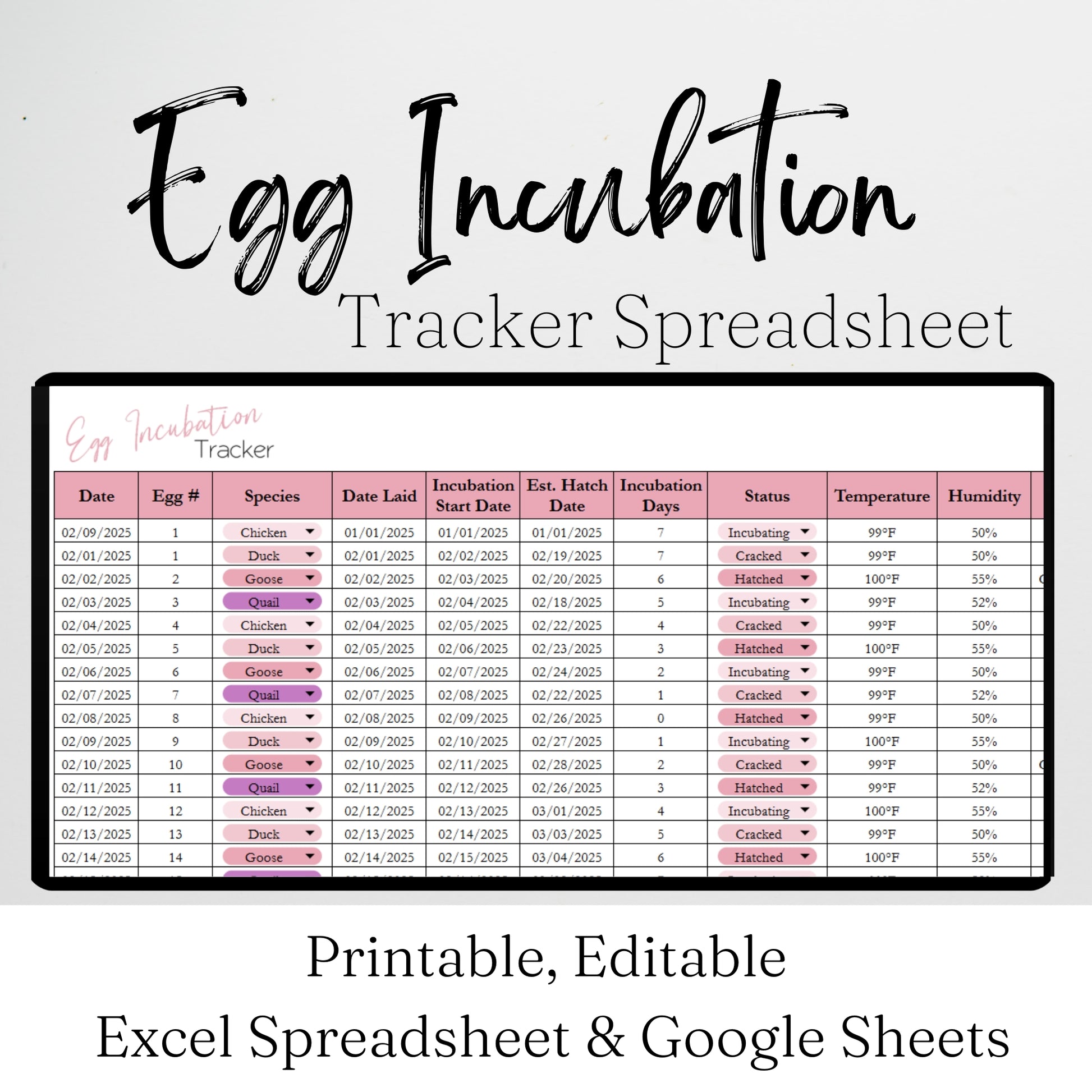 Egg Hatching Tracker Template Google Sheets and Excel Spreadsheet