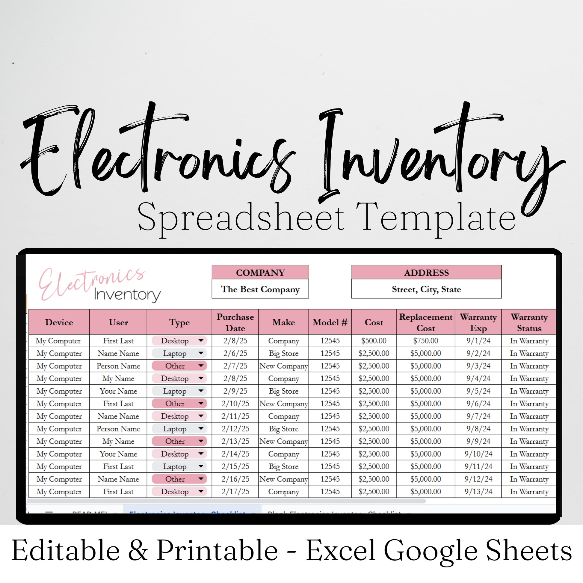 Electronics Inventory Tracker Template Google Sheets Excel Spreadsheet