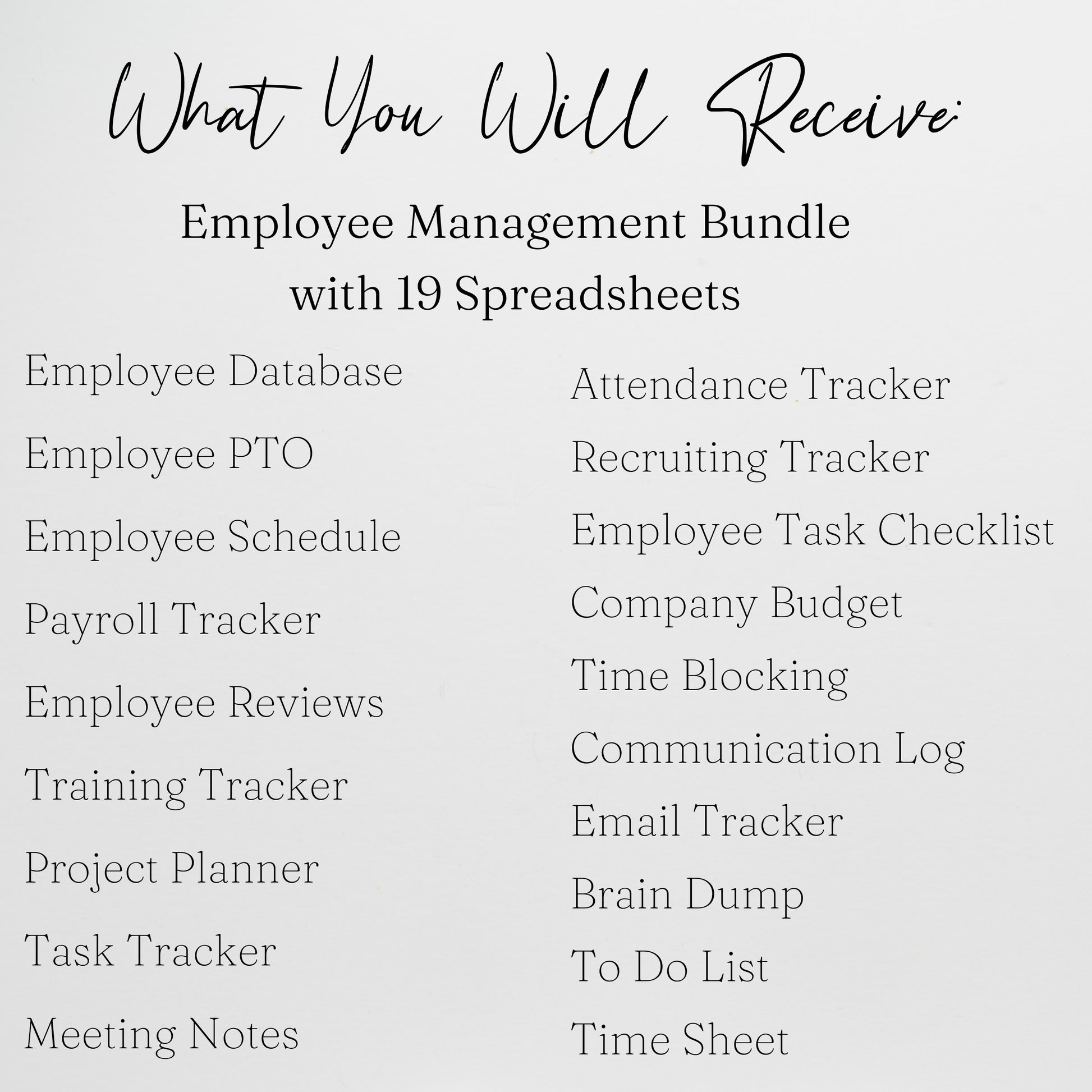 Employee Management Template Planner for Small Business Google Sheet and Excel Spreadsheet Bundle