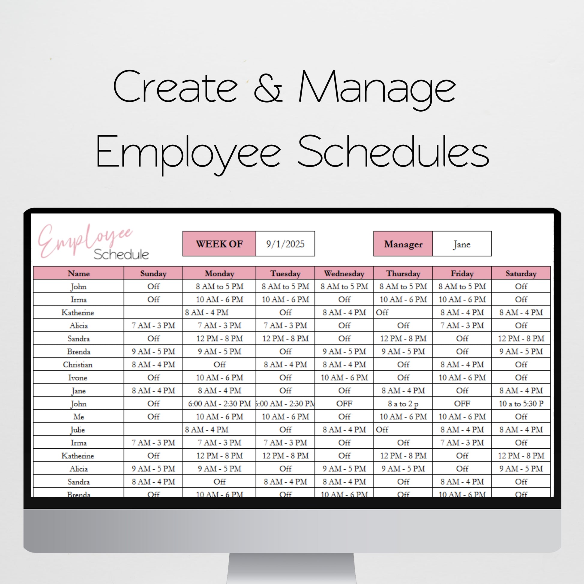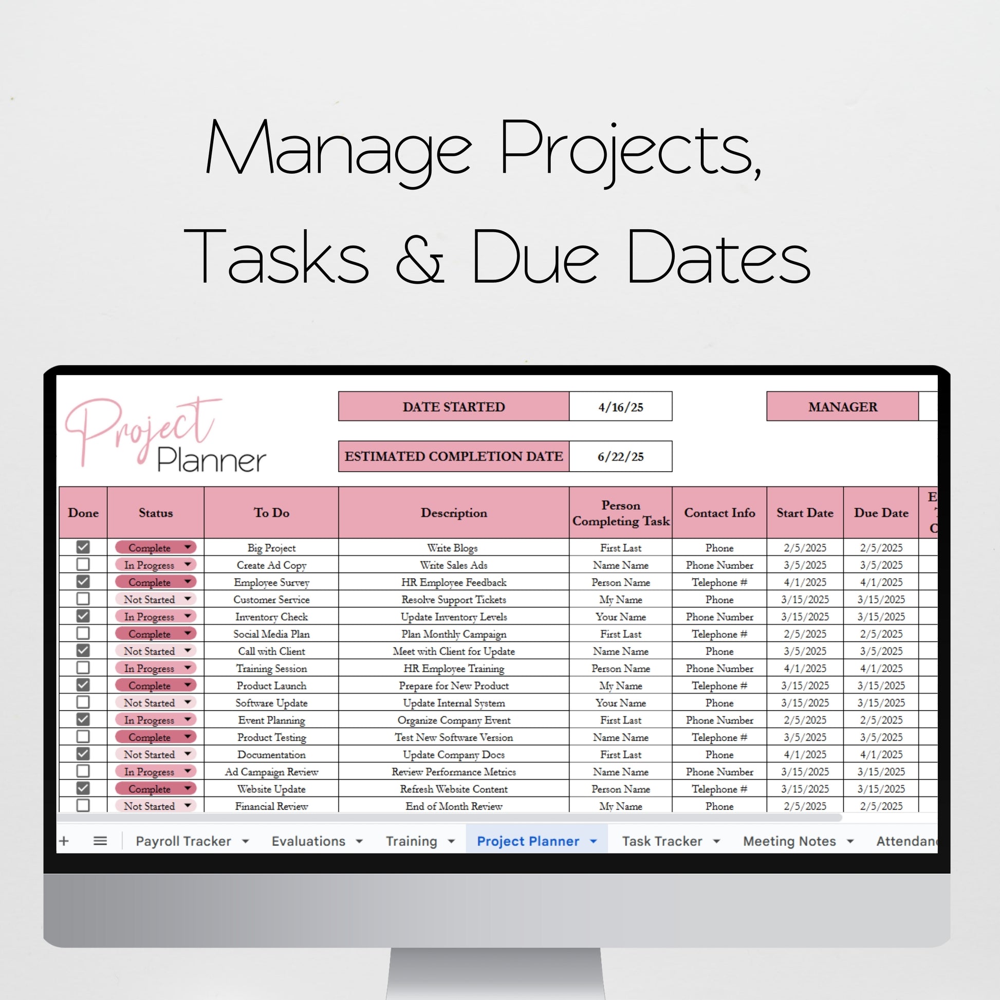 If you are a manager or small business owner, then this employee management template planner will help you to manage your staff. You can track your employees PTO time, create employee schedules, manage payroll, track employee performance, project management, manage hiring staff, giving performance reviews. You can track your business budget, employee attendance, tasks and more to stay organized with your office management.Â