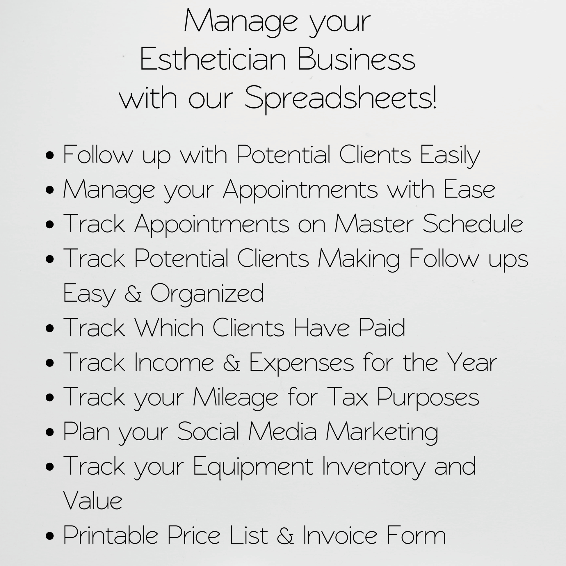 Esthetician Business Template Bundle Google Sheet and Excel Spreadsheet
