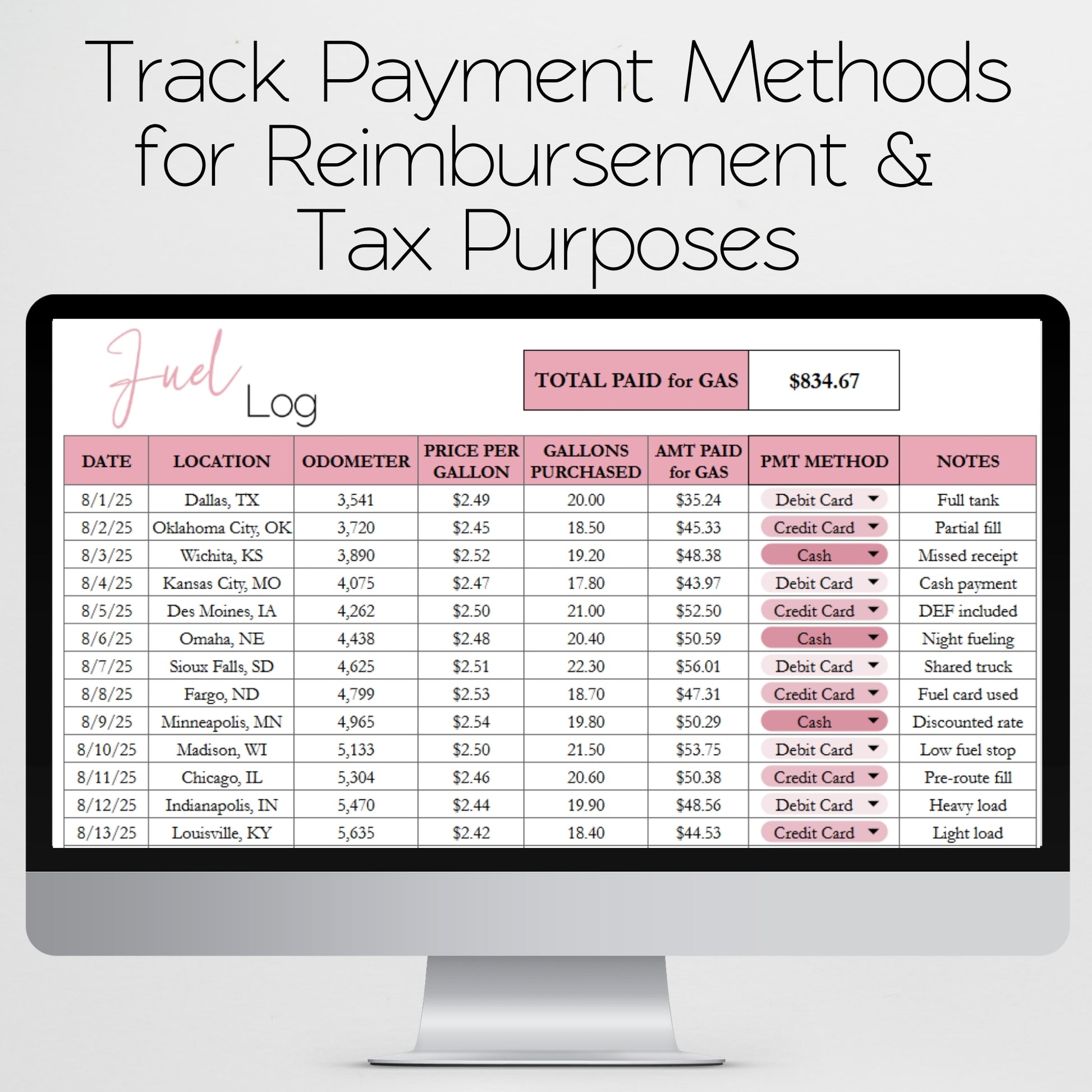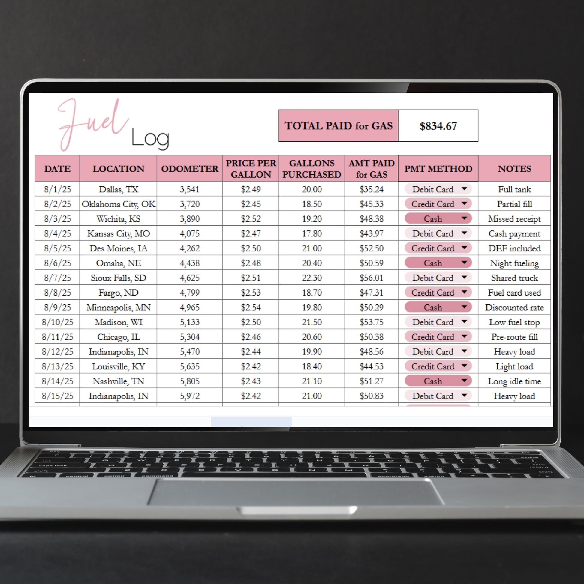 Fuel Log Template Google Sheets and Excel Spreadsheet - Gas Tracker