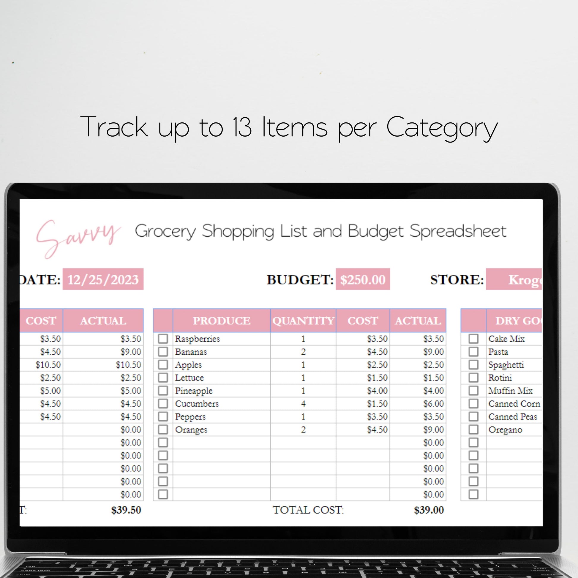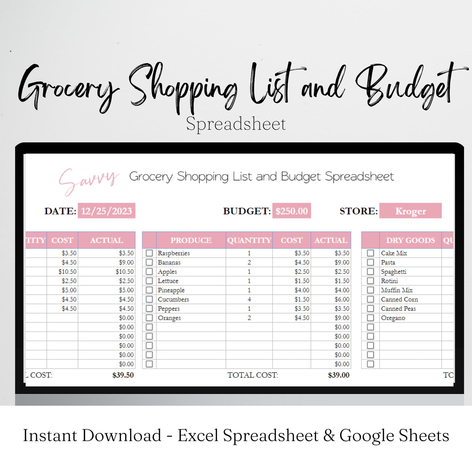 Grocery Shopping List and Budget Template Google Sheets Excel Spreadsheet