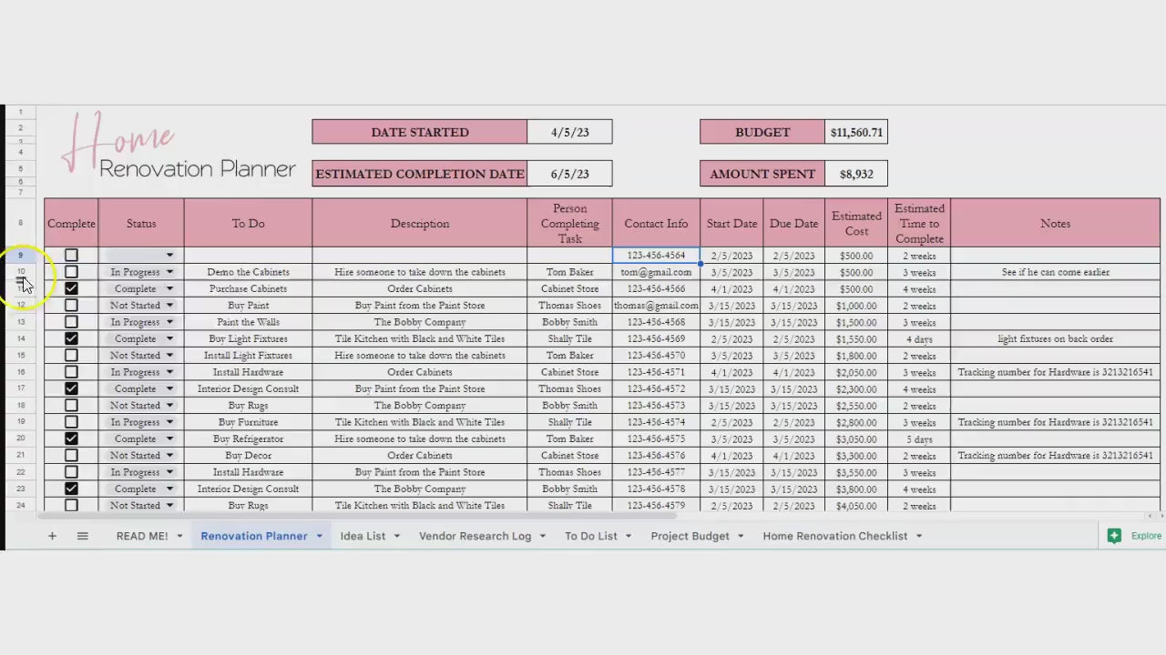 Home Renovation Planner Template Google Sheets Excel Spreadsheet