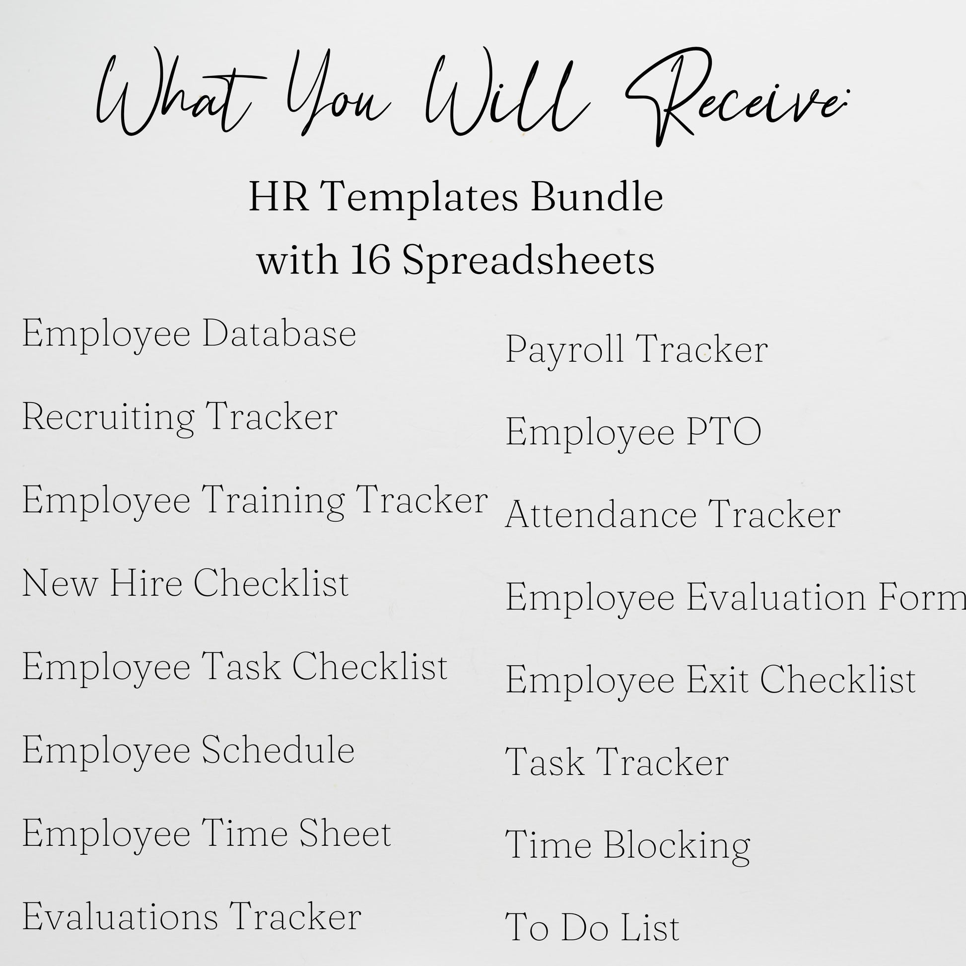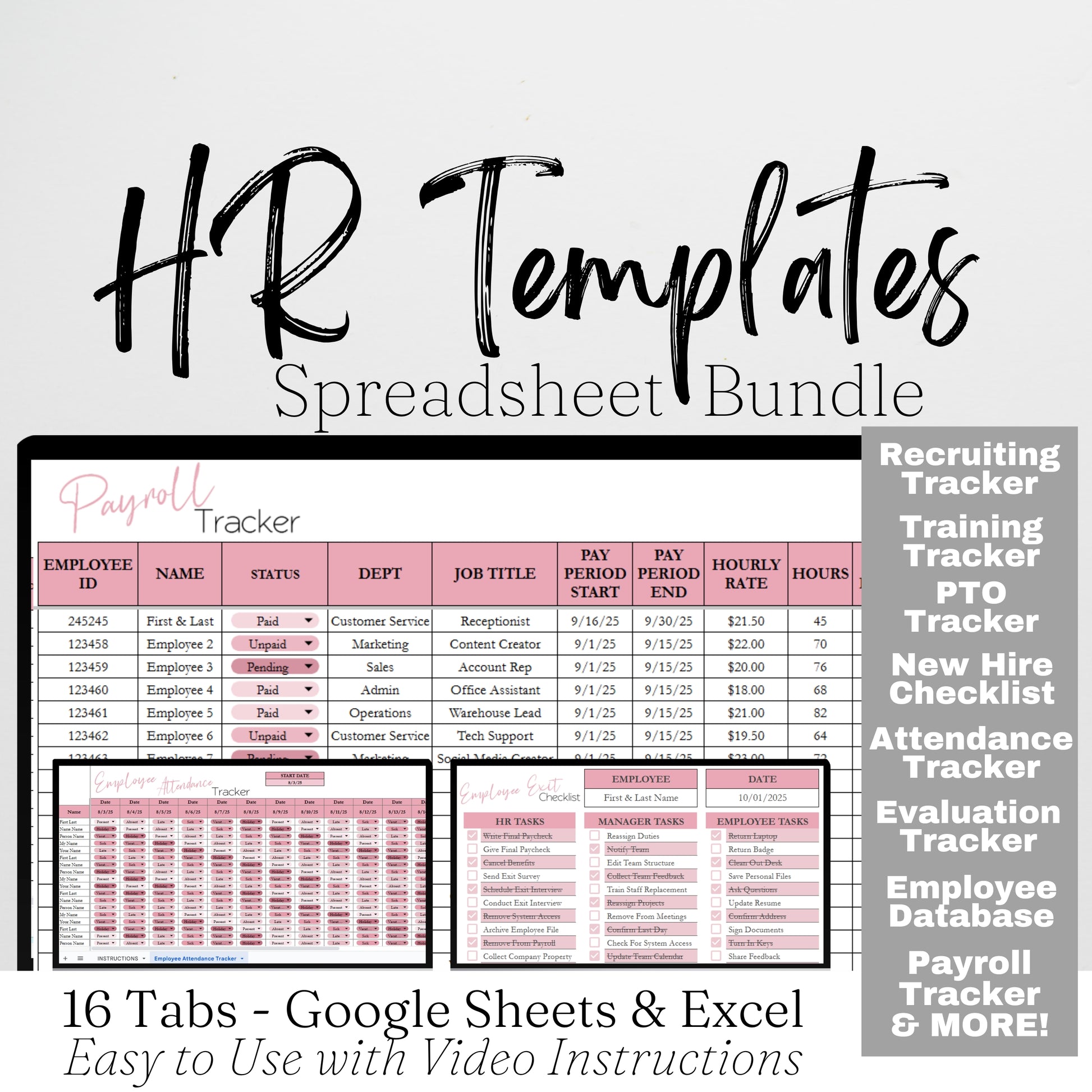 HR Templates for Small Business Google Sheet and Excel Spreadsheet Bundle
